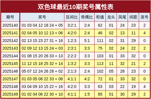 彩球第2025150期双色球奖号属性分析