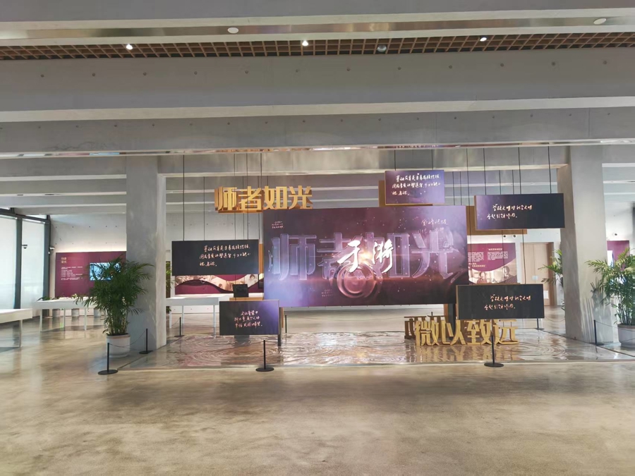 中心展厅展现了“人民教育家”于漪的成长经历、思想成就和教育风采,是一个广大教师学习和弘扬教育家精神的思想空间和精神家园,也是一个面向社会弘扬尊师重教文化、树立优秀教师形象、宣传正确教育理念、共筑伟大强国梦想的教育窗口和交流平台。展厅第一部分《师者如光 微以致远》,展示了于漪老师如何从草根教师到人民教育家的重要成就;第二部分《岁月如歌 风雨砥砺》,讲述了于漪老师的成长经历,解析人民教育家是如何炼成的;第三部分《思想如炬 引领前行》,呈现了于漪教育教学思想的内涵;第四部分《使命如磐 薪火相传》,展现了于漪教育教学思想的传承辐射。
